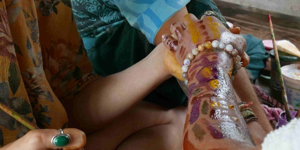 In the afternoon, conversations unfolded in the shade around themes of community, resilience and ecological responsibility. Blu, Tia and Nicole facilitated an art workshop using natural pigments, inviting participants to experiment with earth-based colours. Tia, textile artist in residence, also shared her upcycled fashion work and spoke about sustainability and creative reuse.