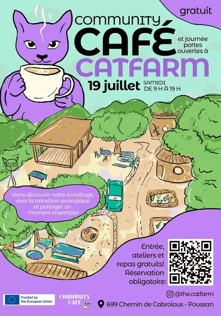 On July 19th, 2025, Catfarm Ecovillage hosted a Community Café Open Day, welcoming neighbours, the community and curious visitors to spend a summer day exploring art, sustainability and community life.